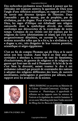 Des recherches probantes nous fondent à penser que les Africains ont toujours entrevu la question de Dieu sous l’angle d’une réflexion scientifique, en rapport avec l’état du savoir aux diverses époques de l’histoire. Dans l’ensemble : pas de messie, pas de prophète, pas de révélation, pas de dogme. Pour n’avoir jamais rencontré Dieu, les sages d’Afrique ont échafaudé une religion rationnelle dont la symbolique dévoile des vérités conformes aux découvertes de la cosmologie de notre temps. Certaines de ces vérités ont été reprises par les religions du Livre (christianisme et islam) qui s’en sont progressivement détachées, en ouvrant la voie à des notions nouvelles telles que la « foi », la « révélation », le « dogme », etc., très éloignées de leur version première, scientifique et négro-égyptienne. C’est en fin de compte l’homme qui dit Dieu et le sacré selon son bon vouloir. Aussi faut-il en finir avec ces certitudes « absolues », sources de tant de fanatismes, d’exclusivismes, de guerres de religions et de religions de guerre qui font tant de mal à l’humanité. Si la loi de la vie c’est bien la diversité, autant tourner le dos à cet archaïsme culturel qui prescrit de contraindre des nations à adopter des religions différentes des leurs, de surcroît intolérantes, esclavagistes et guerrières par ailleurs, sans rapport avec les avancées de la science.