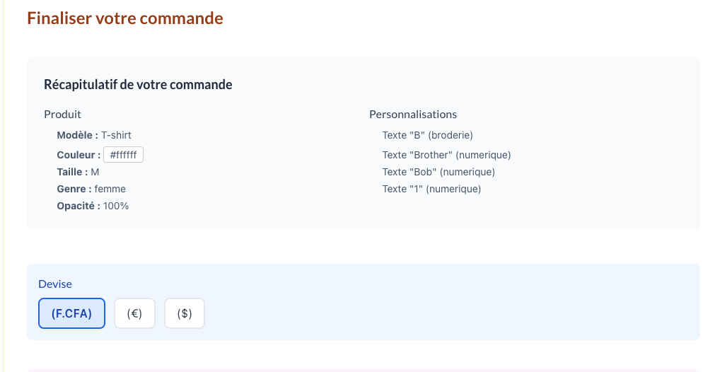 Récapitulatif de votre commande