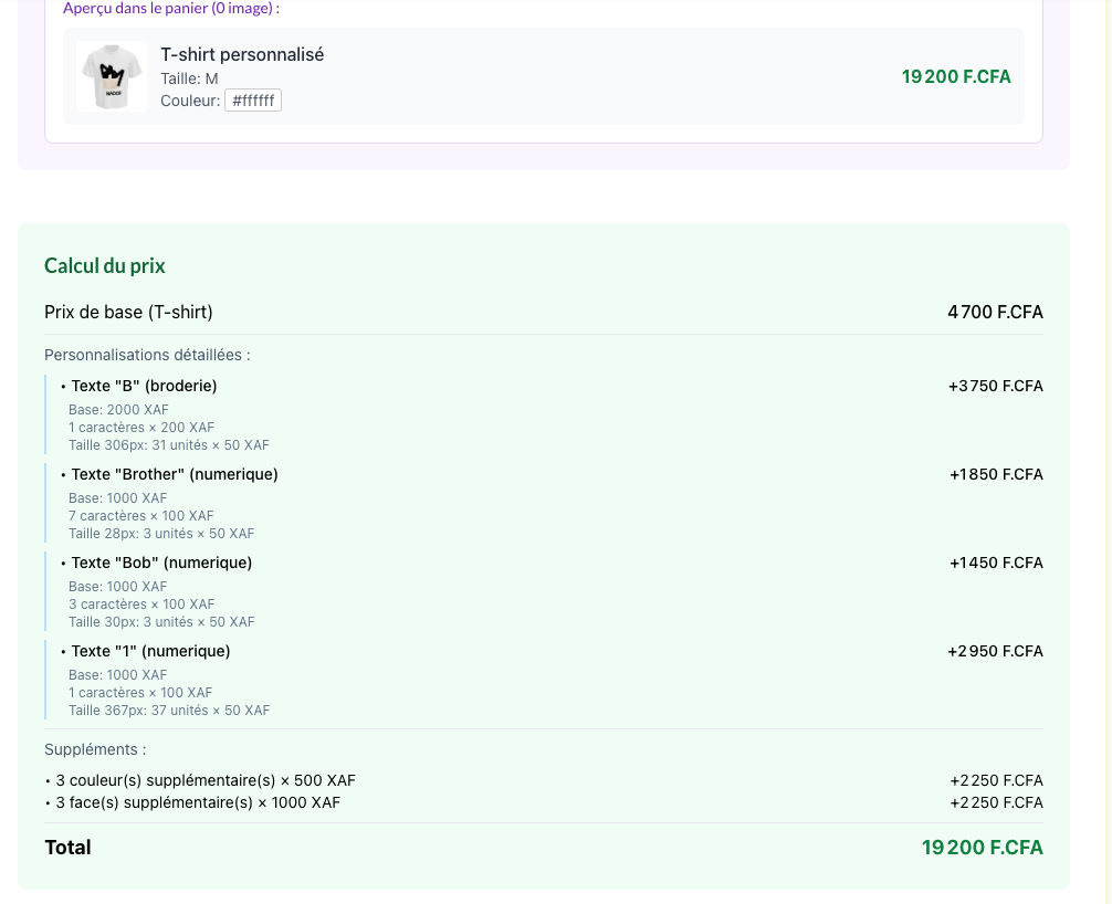- 1 face(s) supplémentaire(s) × 1000 XAF