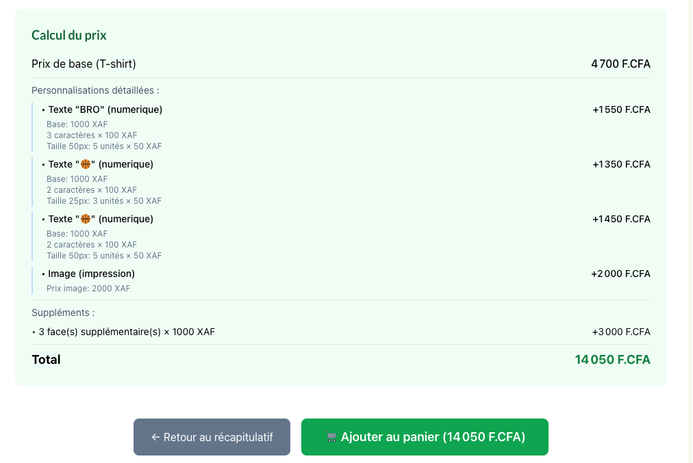 - 3 face(s) supplémentaire(s) × 1 000 XAF