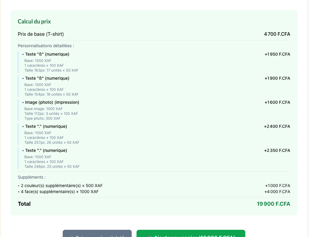 - 4 face(s) supplémentaire(s) × 1 000 XAF